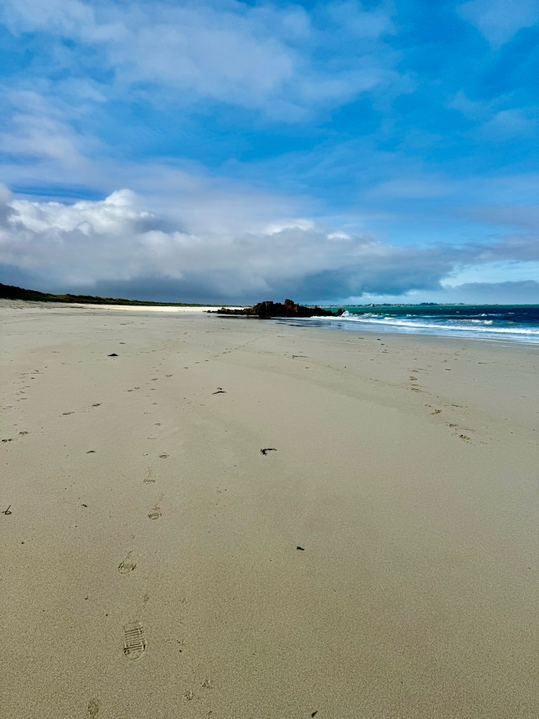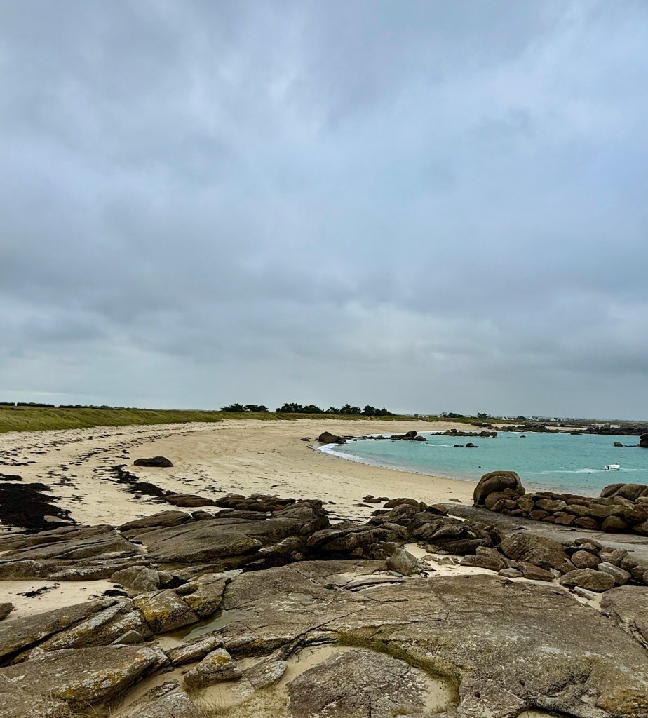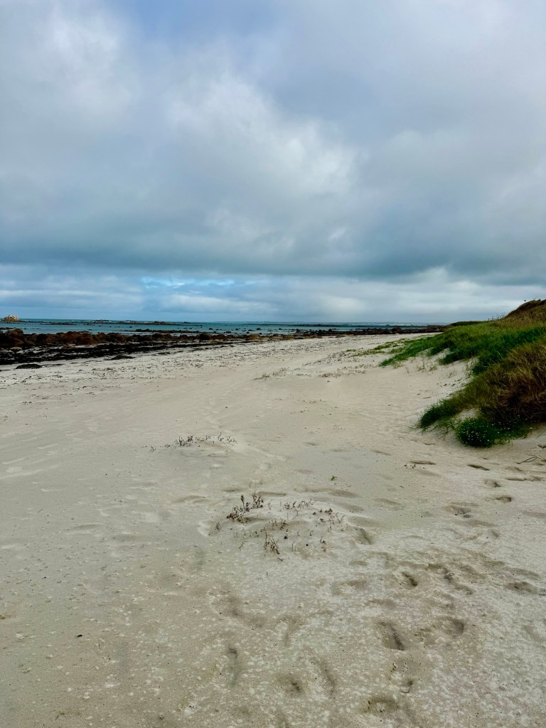 A mostly cloudy and grey day with a bit of drizzle here and there and looking back on today’s photos, more blue skies than I remember! It was a bit wet first thing so we didn’t rush off and we also needed a bit of food shopping so that was our first stop. After a short drive we ended up on the other side of the Baie du Kernic on the lovely long stretch of pristine white sand that is Plage de Keremma….