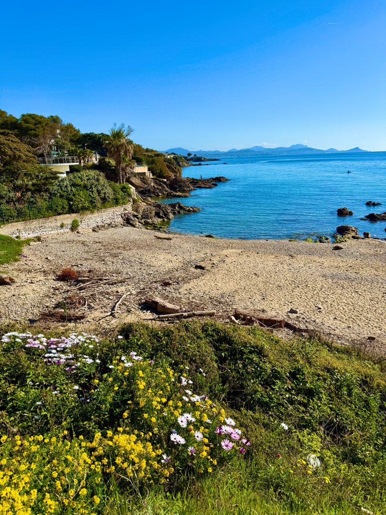 Another beautiful blue sky day, as we take a stroll along the coast heading northwards to the main town of St Aygulf. What that really meant, as the main road pretty much hugs the coast and doesn’t have consistant safe pathways, is that we meandered along the cycle path just above the main road, dipping down and crossing the main road at intervals to pick up a couple of beaches on the way. Firstly Plage de la Corniche Azur, then Plage de Grand Boucharel and just on the outskirts of the town Plage de Pebriere…