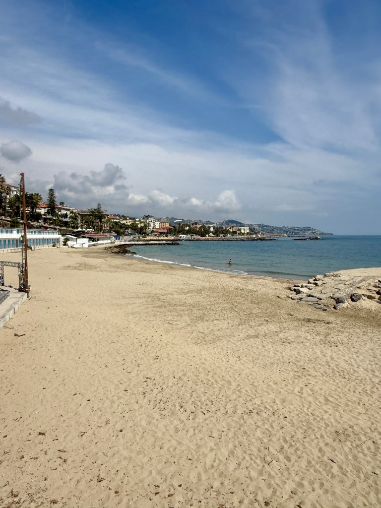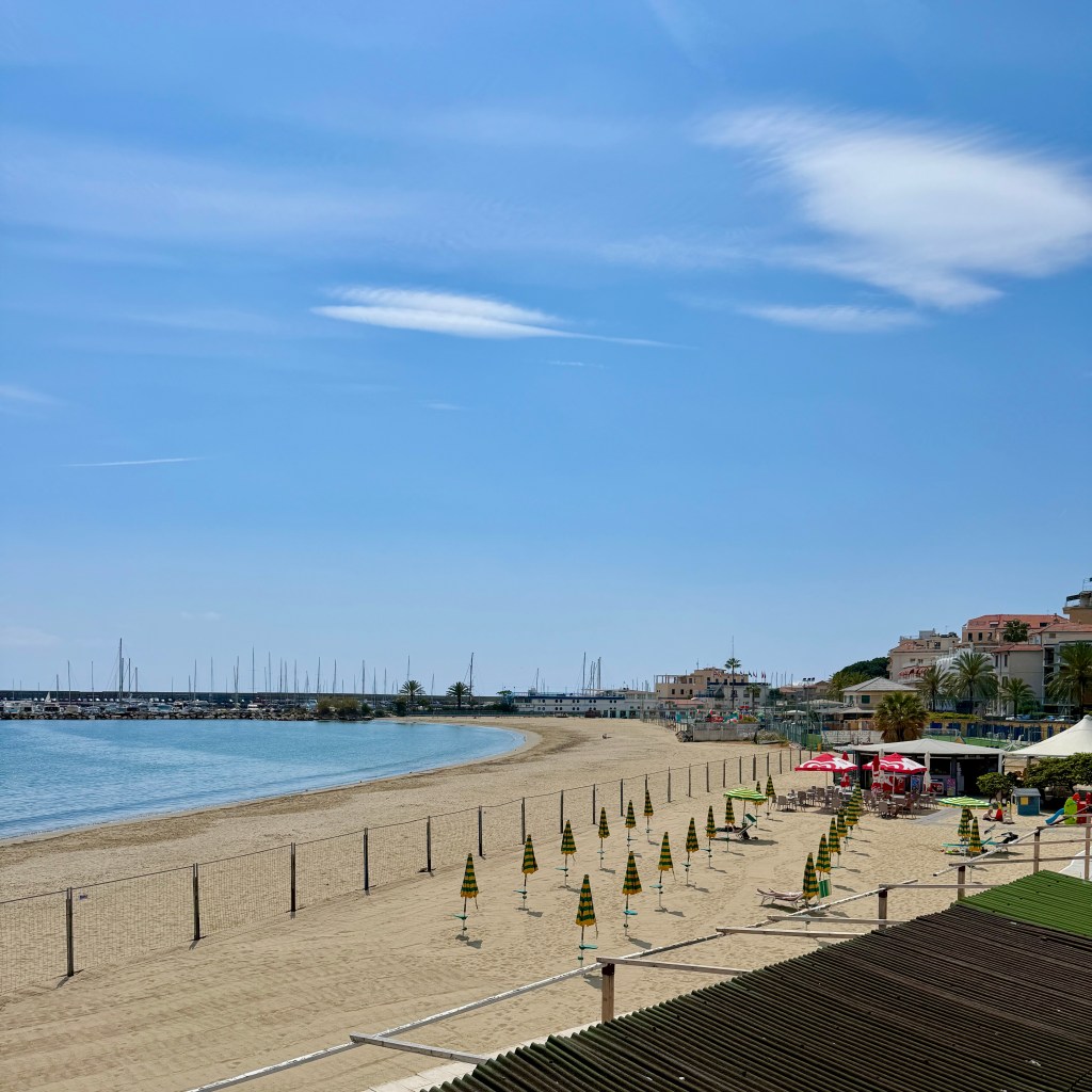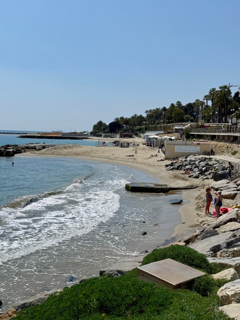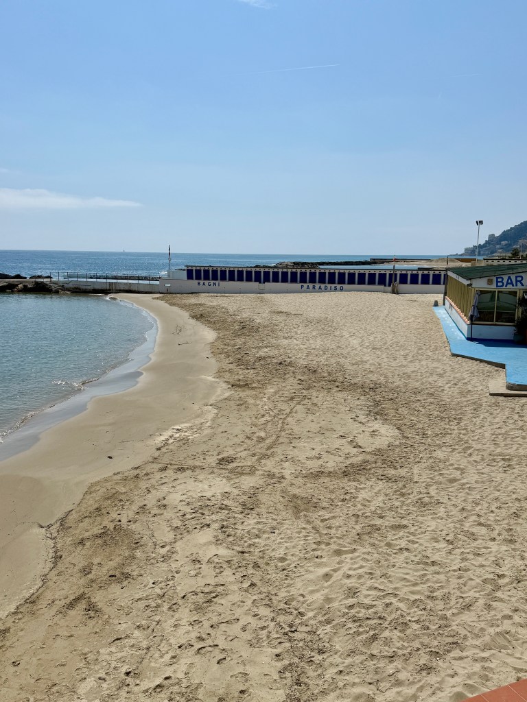 At this point we turned back on ourselves and found the far more attractive Spiaggia Chiosco Morgans tucked into a bay between the 2 main marina’s, still and calm waters protected by the outer sea walls – this is a private beach (as indeed were nearly all the beaches in Sanremo) with paid access via the various bars…