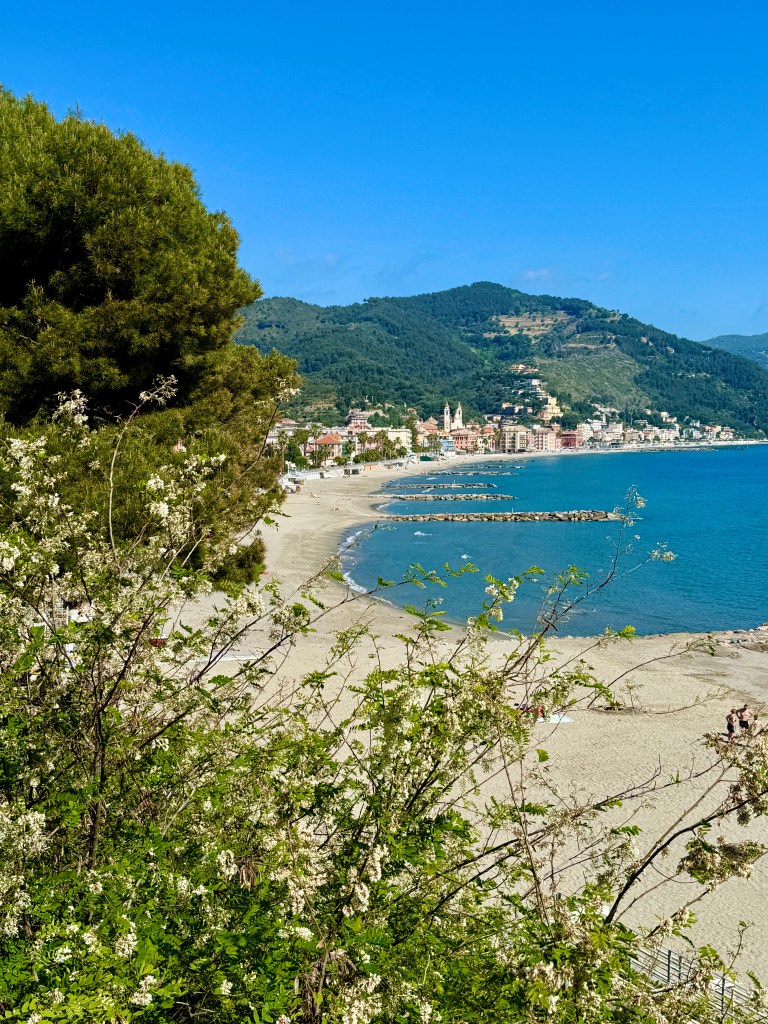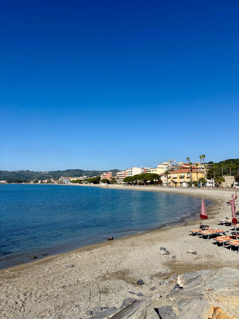 We then continue our journey along the SS1 coastal route heading north stopping for a shortish walk in Andora the next village along – beautiful sands with many private sections of beach and some public areas….