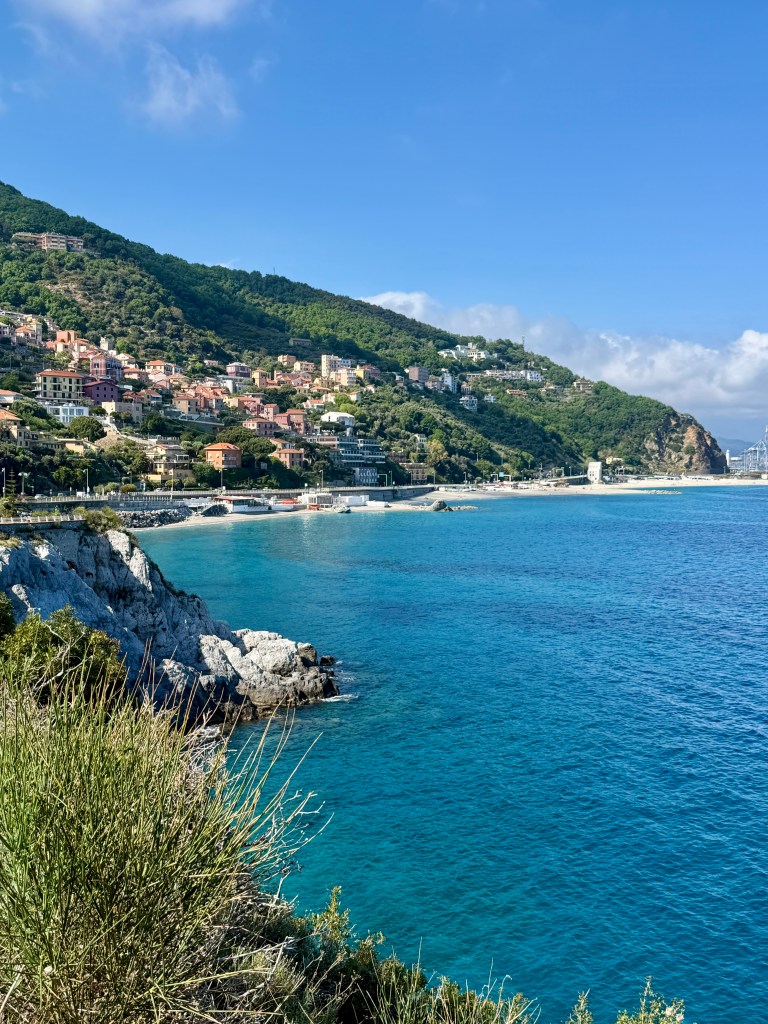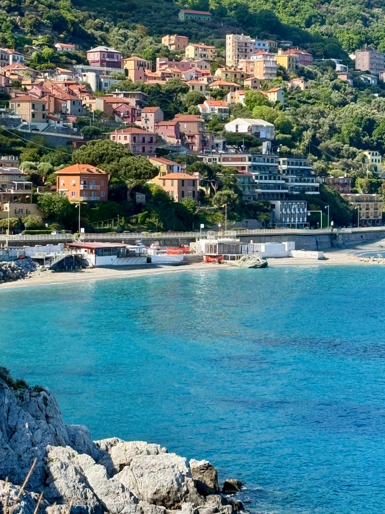 Just around the bend and we get views down onto the next resort along – Bergeggi and glimpses of it’s beach….