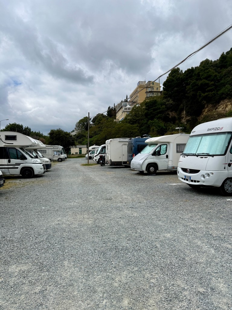 We soon arrived down into the resort of Spotorno where we found space (just) in a very basic Aire at the northern end of the beach….