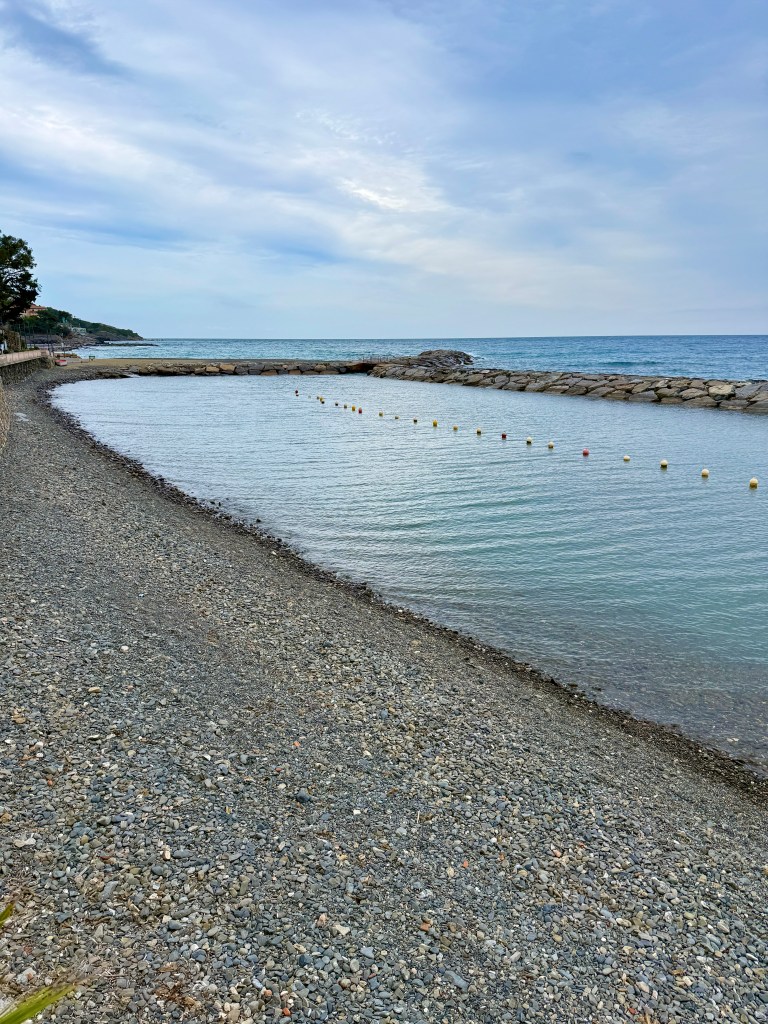 Wandering along Spiaggia Cervo (an almost sandy beach!) to Bagni Tosca a sort of enclosed swimming lagoon….