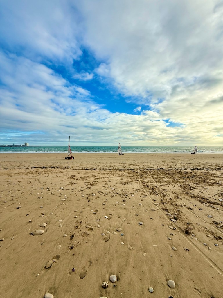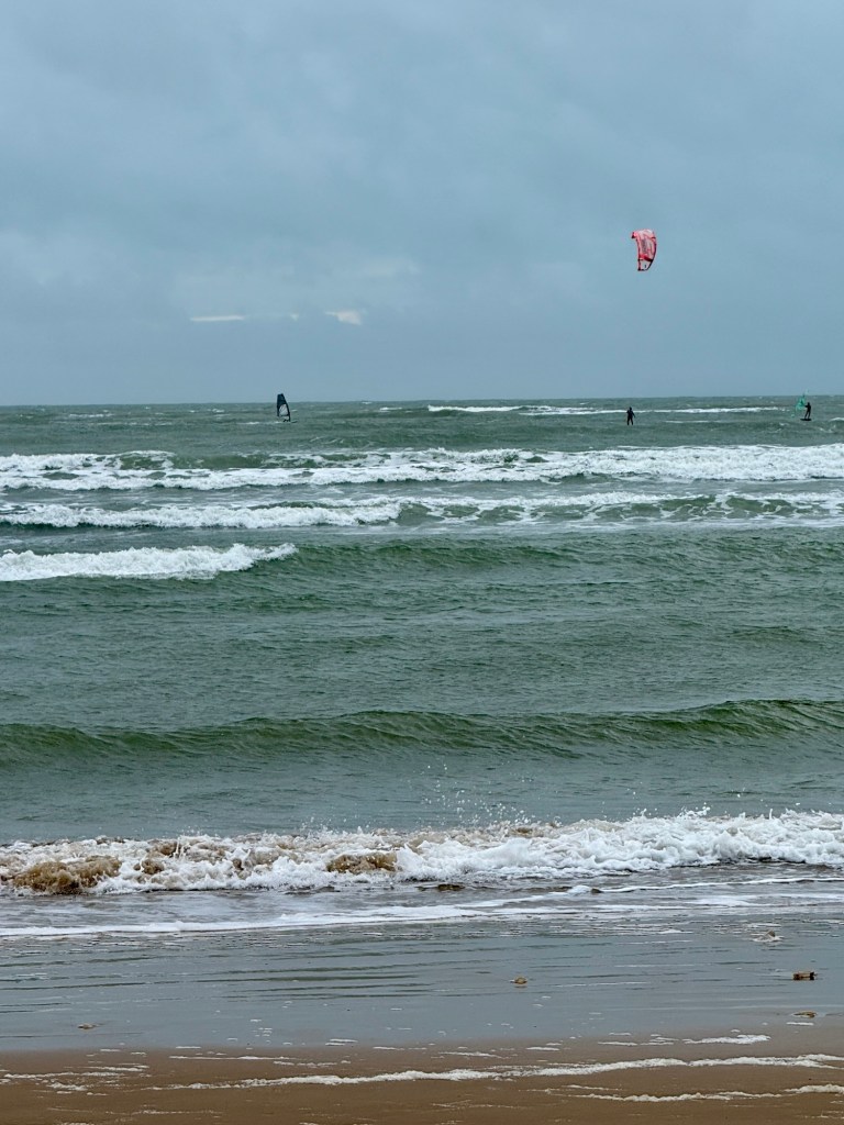 Once settled we battled against the increasing wind down to the sea front and Plage de Benoit (the northern end of this beach)….