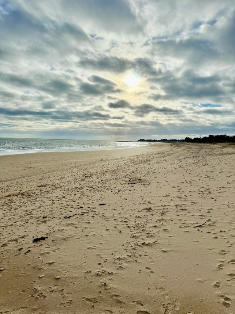 We started the day with a wander down to the nearest beach – Plage de la Parée du Jonc – a rather pretty almost pink beach backed by dunes and pines and stretching off into the distance to St Jean-de-Monts with the pier just visible….