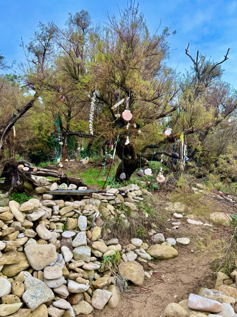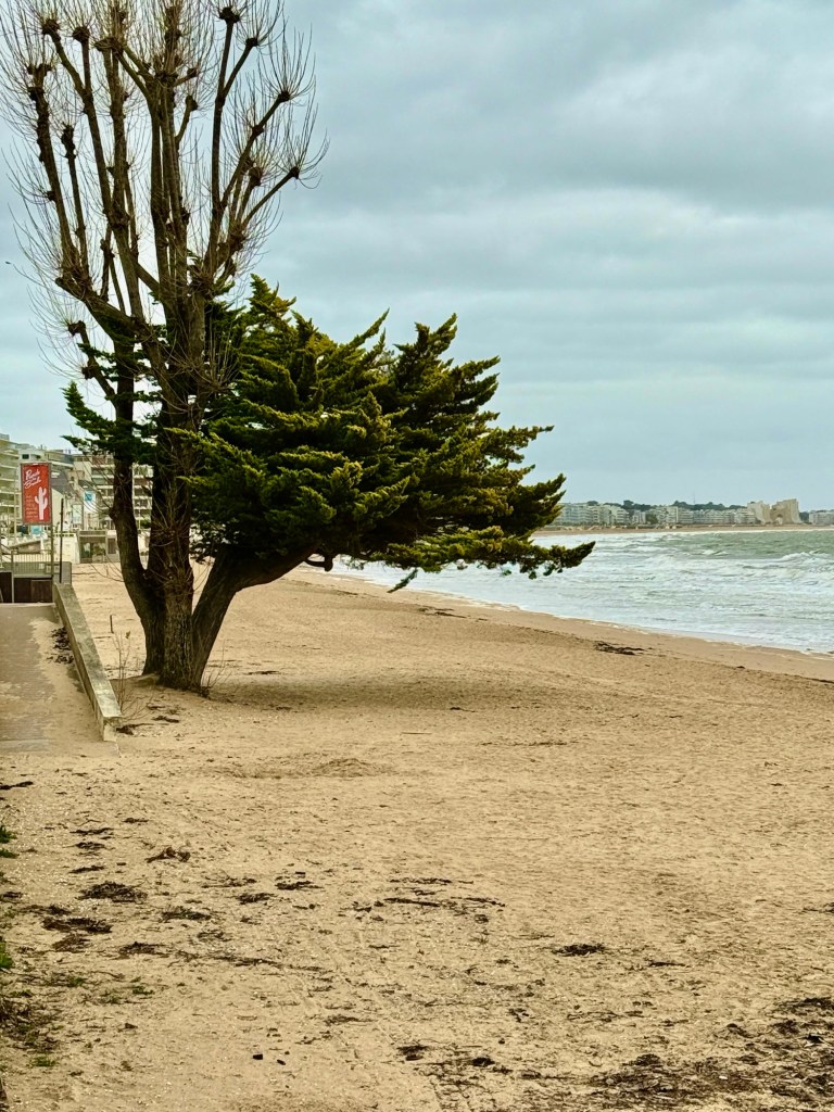 We continued along the beach which is intermittently broken up by beach bars and restaurants (mostly closed for the season) and also the odd tree…