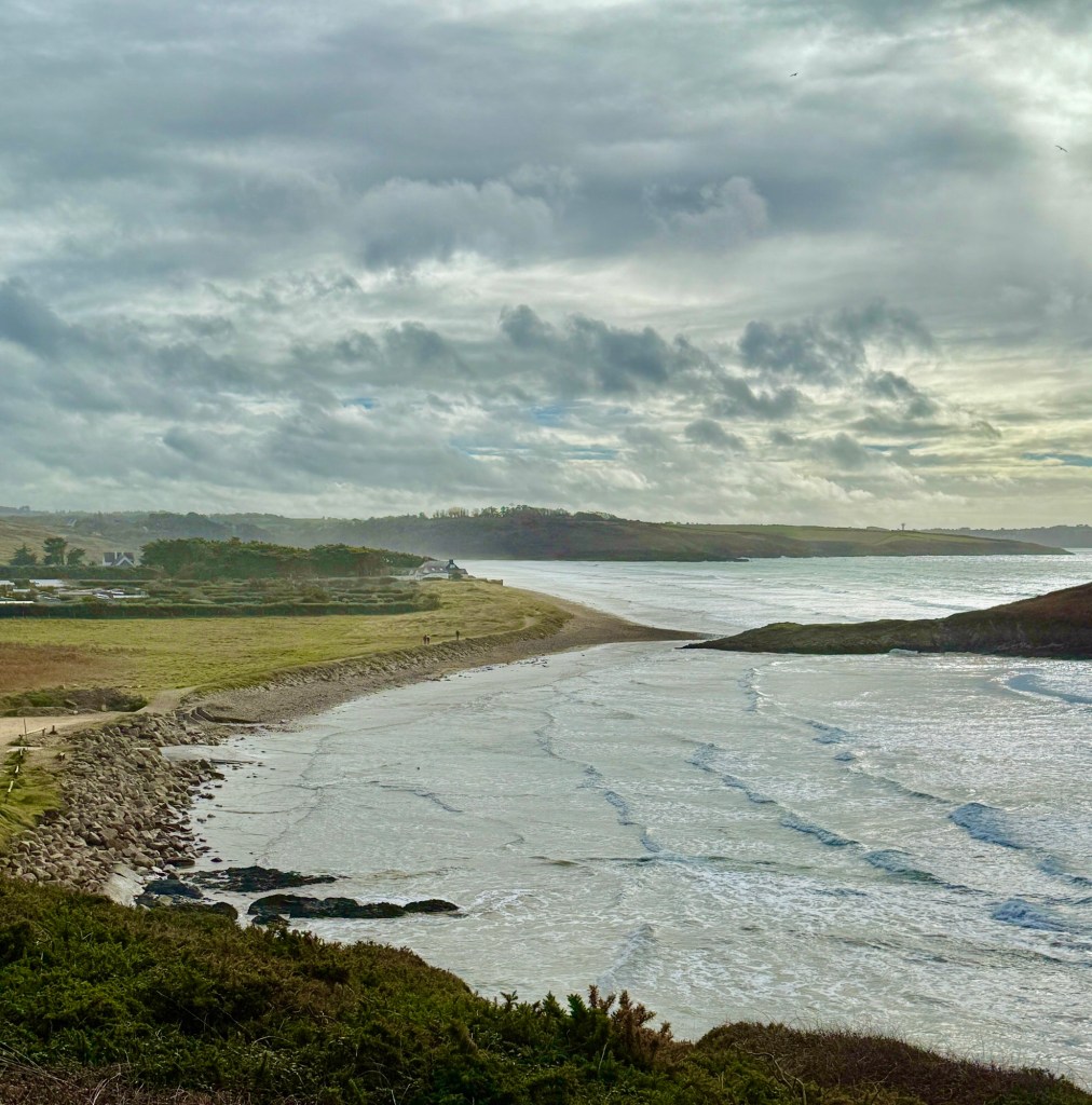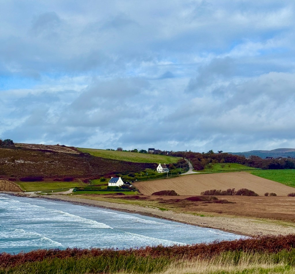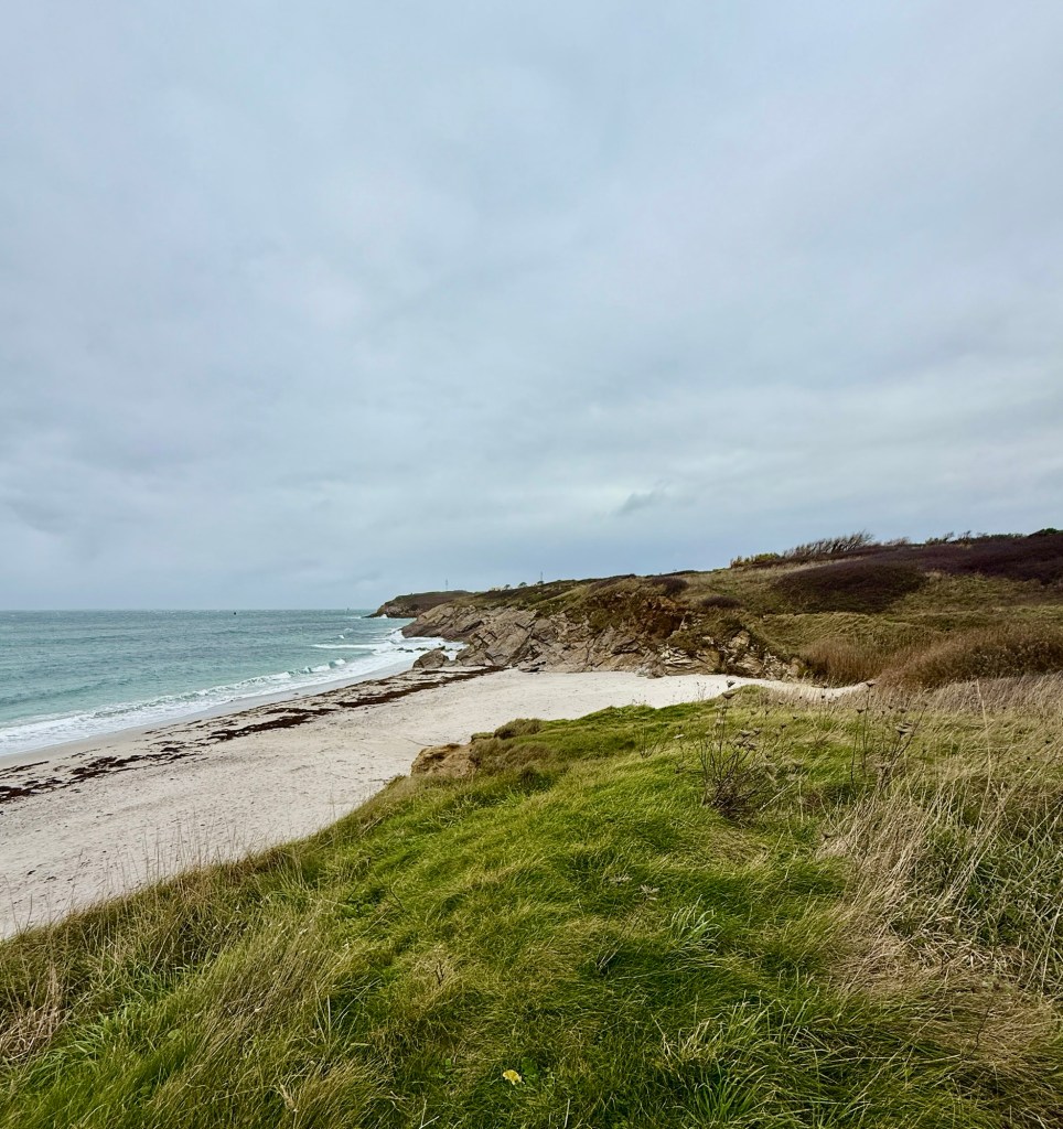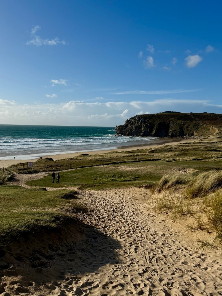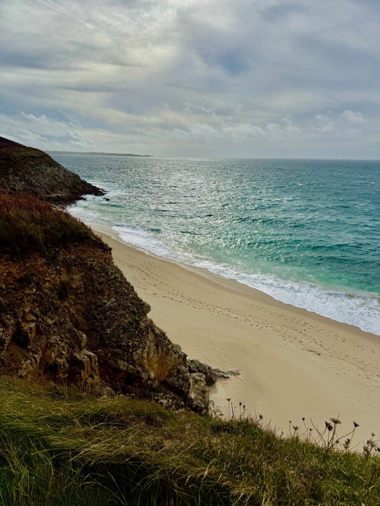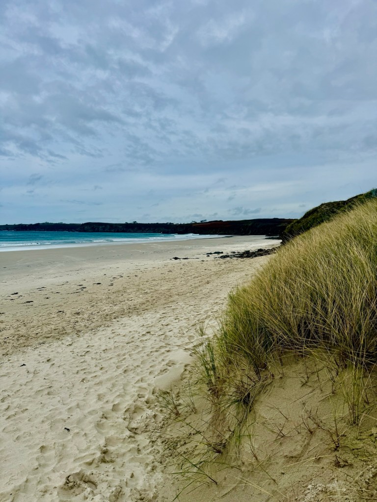 Our next and last stop was not so much a beach walk as a dune walk as the tide is almost at its peak – Plage de St Anne la Palud and over a headland to look down onto Anse de Kervijan….