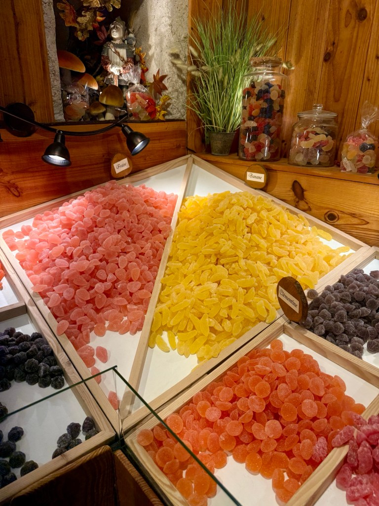 The village appeared almost deserted with many shops closed, to be fair it is late afternoon and from experience a lot of the smaller shops don’t open on Mondays – never mind at least we get to wander around the quaint little streets and the sweetie shop was open – all hand made from natural produce so I’m told and believe based on the price!!…