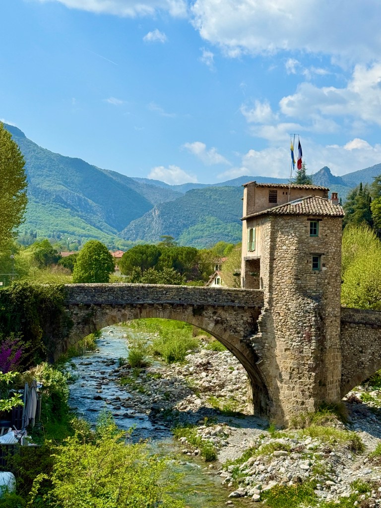 The village itself has a lovely local atmosphere with the cafes along the road all offering tables and chairs by the riverside and never appearing to be short on trade and little groups of older folks just passing the time of day, watching the world go by in each others company or playing an animated game of boules.