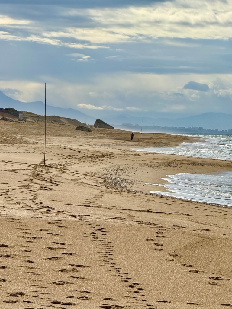 After all that rain yesterday afternoon and through the night, we woke to an absolute stunner of a day today and though cold, as in feeling icy cold especially in the shade, it stayed with us until about 4pm, when it clouded over and started to rain but hey we were done by then. I apologise in advance that this blog is a little photo heavy but there was so much to see and capture – starting with snow fall overnight on the Pyrenees, captured as we took our early morning walk down to Plage de Ilbarritz….