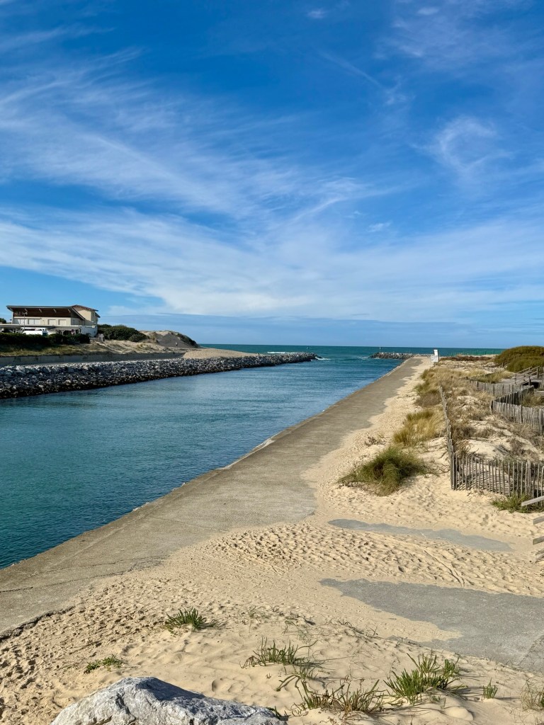A stunner of a day for us, a little breezier but warm and sunny. As we are sadly nearing the end of this amazing coastal journey of the West Coast of France we are also slowing things down a little to savour this beautiful sandy stretch of coastline down to the Spanish border. Tempting though it is to pop over the line we are not going to as there are slightly different rules for driving in Spain and I am quite comfortable with the French speed limits etc and don’t wish to confuse things before our reasonably long journey back up to Caen.