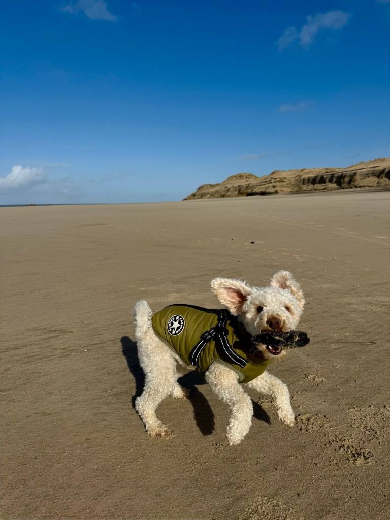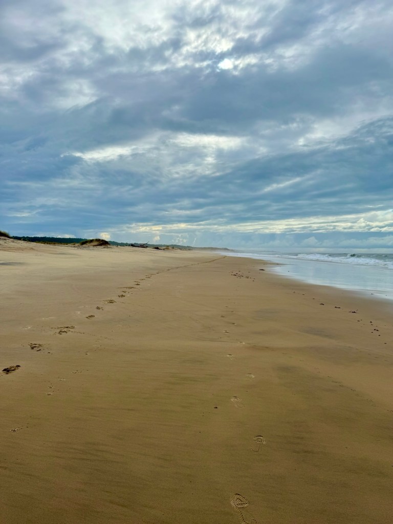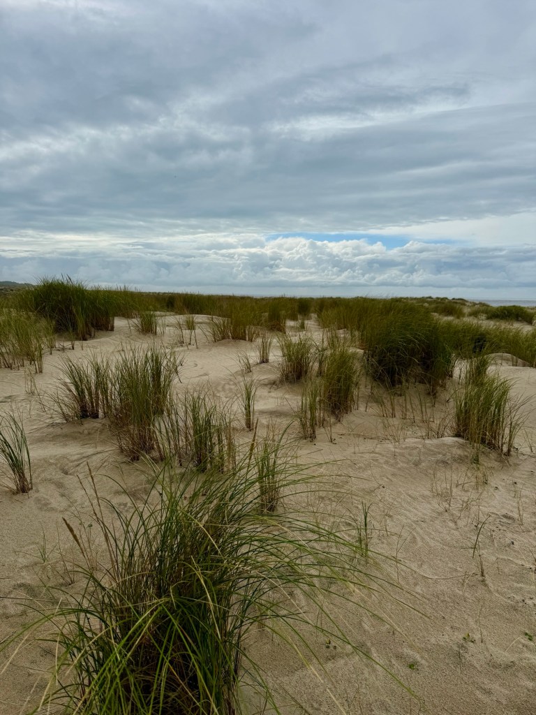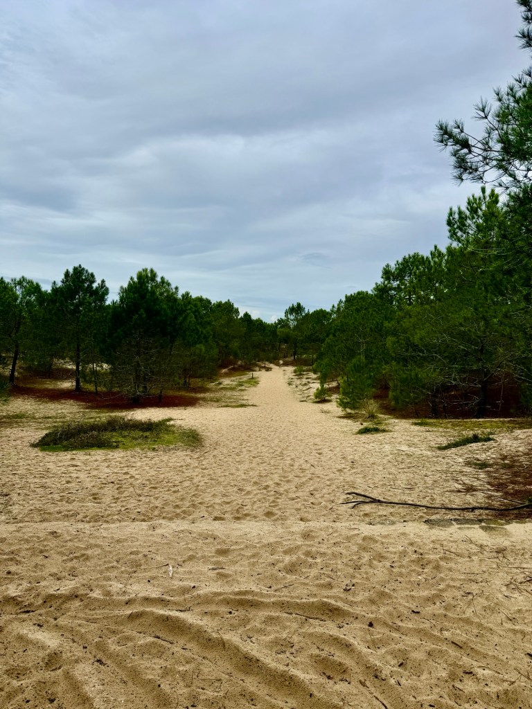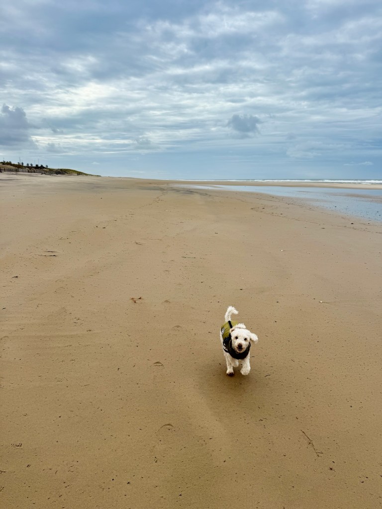 - Beautiful though this sand is – walking on it is tiring even lightweight Tilly sinks into it and is having to make a real effort to get any where – the wet sand on the beach is fine it is just getting along the sandy forest paths and over the dunes that is a battle – good for the heart though!!