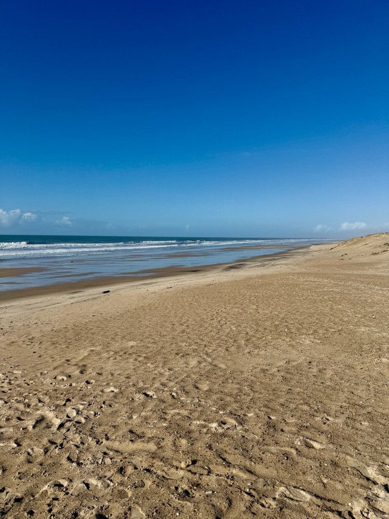 A pretty good day again today, warming up nicely in the afternoon. We were on our way fairly promptly and soon arrived at our first beach of the day – Plage du Porge….